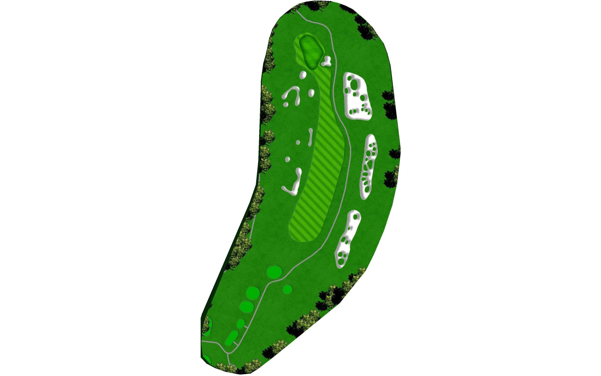 Second and final par 5 on the course. Large landing area but it is a must you avoid long fairway bunkers on the left. Solid tee ball leaves the choice to layup or go for it. Green protected by 50yds of bunkers on the right with greenside bunker and native grass left. Front pin location is green light.